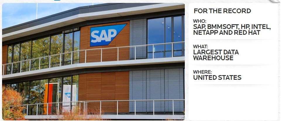 World’s Largest Data Warehouse record -12.1 PB from SAP: SAP along with technology partners, from BMMsoft, HP, Intel, NetApp and Red Hat, has created the new world record for the world’s largest data warehouse. This data warehouse contains 12.1 petabytes (12,100 terabytes) of raw data.This is done using the SAP HANA platform and SAP IQ software. This has been recognized by Guinness World Records, and is four times larger than the prior record. SAP made the announcement during a press conference held March 5 in Palo Alto, California.“Setting a new world record with the combination of SAP HANA and SAP IQ was a ‘moonshot’ challenge I had laid out for our engineering team,” said Dr. Vishal Sikka, member of the Executive Board of SAP AG, Products & Innovation.