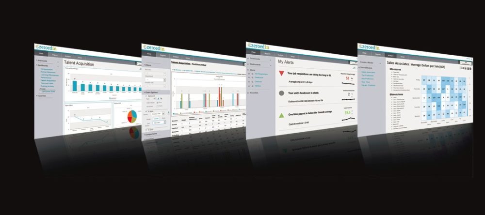 ZeroedIn automatically assembles your workforce data into powerful metrics and performance indicators that enable you to: create and share role-based dashboards, analyze & compare data between business units, job roles, or any mix of employee demographics, collaborate and annotate notes on trends and impact.
